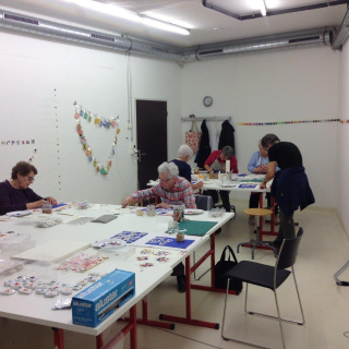 Das offene Atelier bietet die Möglichkeit, aus einem breiten Angebot von Materialien und Techniken, nach Lust und Laune auszuwählen und fachkundig begleitet verschiedene Arbeiten zu realisieren.