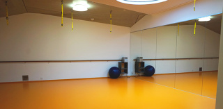 Es stehen auch verschiedene Hilfsmittel für das Balance-Training zur Verfügung, welches auf einer grossen Matte vor einer Spiegelwand durchgeführt werden kann.
