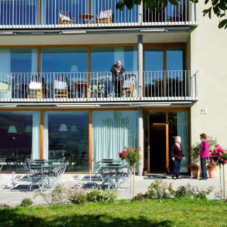 Lassen Sie sich vom lebendigen Geist des Hauses tragen, den Sie selber mitprägen können. Mit Post, Laden und Postautoumsteigestelle gleich nebenan, ist das Dorfleben präsent. Das Café, Fitness- und Trainingsräume, Massagepraxis, Fusspflege, Werkstatt, Kurs-, Büro- und Gewerberäume bringen Leute jeden Alters ins Haus und gewährleisten einen engen Bezug der Dorfbewohner zum Haus.